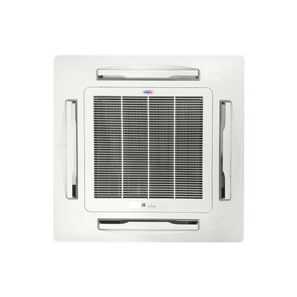 The Frego Cassette AC (4.5 Ton) is a powerful cooling solution designed for commercial and large residential spaces, delivering a cooling capacity of 45,000 BTU/H for efficient and reliable performance. Built to provide uniform comfort, it features air outlets in all directions to ensure even cooling across the entire room while maintaining a low noise level for quiet operation. Equipped with Golden Fin technology, the unit enhances heat transfer efficiency and improves durability for long-lasting use. Additional convenience features include a 24-hour timer, auto unfreezing, automatic vertical blinds, and self-diagnosis functions for easy maintenance and trouble-free operation. The fresh air intake system further enhances indoor air quality, creating a healthier and more comfortable environment. With its combination of strong cooling performance, smart functionality, and durable design, the Frego RA 45000 cassette AC is an ideal choice for offices, showrooms, and other large indoor spaces requiring consistent and efficient cooling.