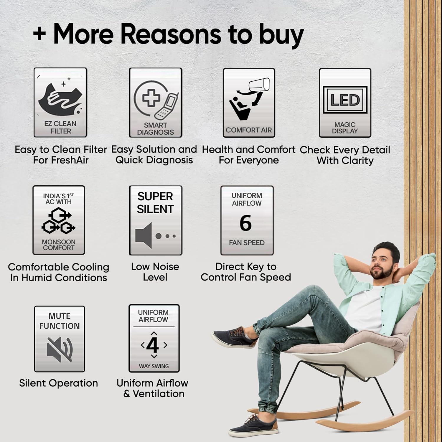 - Energy-efficient inverter cooling for medium rooms